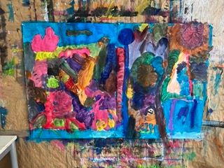 Malerisches Erleben und Forschen stehen hier im Vordergrund. Kinder haben hier die Gelegenheit situativ und ohne konkrete Zielsetzung ihre eigenen Ideen umsetzen. Ich nehme jedes Kind und somit jede Persönlichkeit ernst und unterstütze es bei seinem Vorhaben individuell und immer ohne Wertung. Es gibt kein Richtig oder Falsch, sondern einen geschützten Raum mit entsprechendem Platz, Struktur und wenigen Regeln, die lediglich dem Entwicklungspotenzial dienen. Auf dieser Basis sollen die Kinder sich in der Gruppe künstlerisch weiterentwickeln. Nach und nach wird es mehr Anregungen und Impulse geben.
